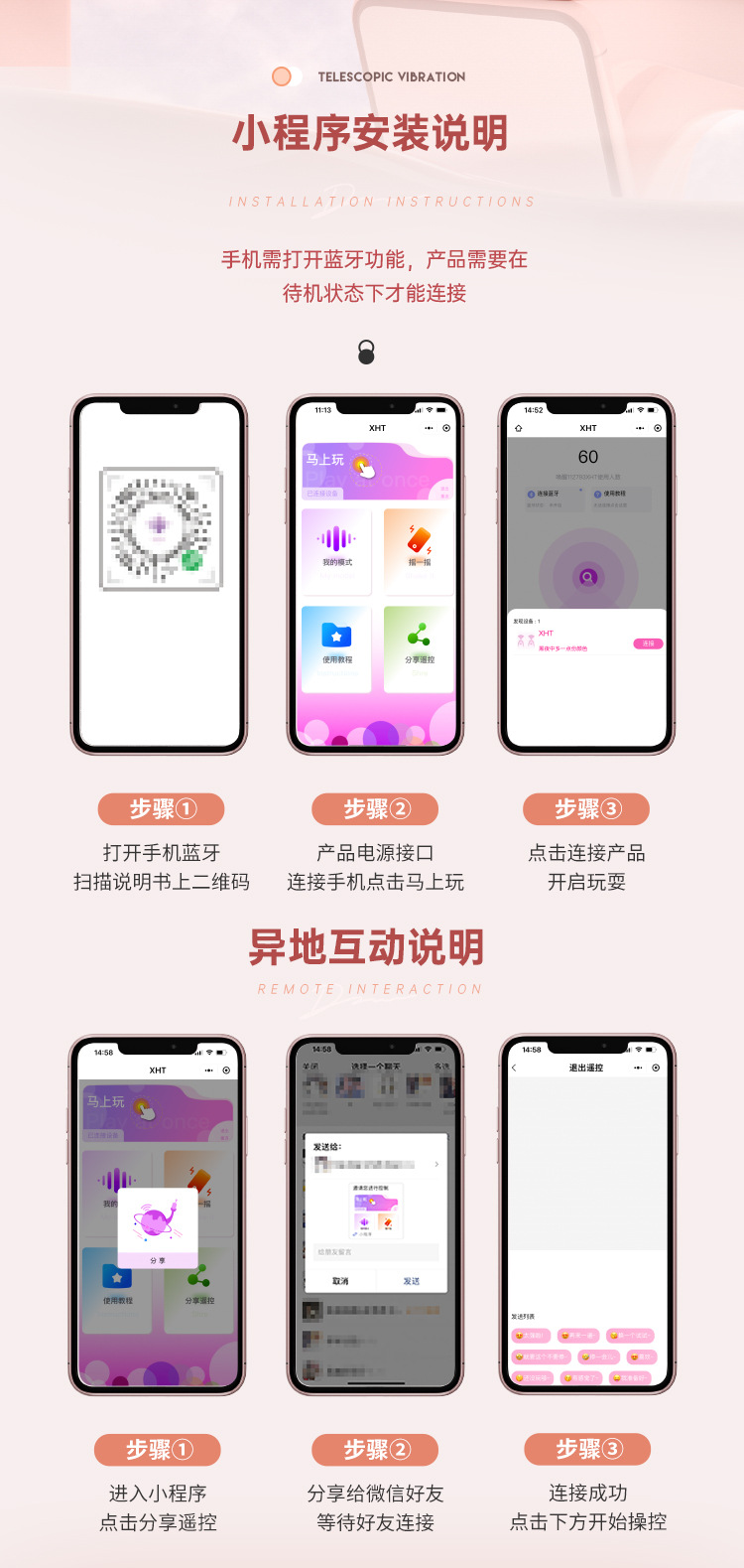 Frequency mode: stand-alone 10-frequency vibration + telescopic / small program custom mode